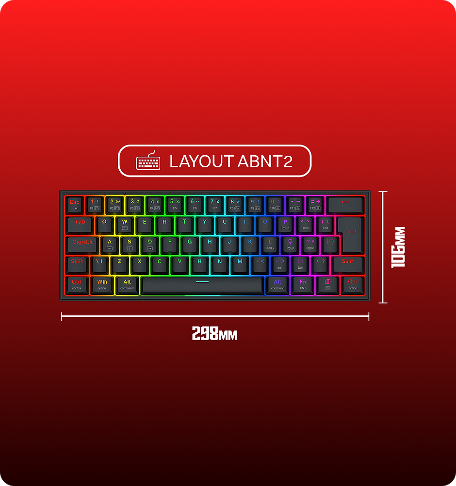 - Primeiro teclado da Redragon compatível com o software QMK / VIA, o programa mais utilizado pela comunidade entusiasta de teclados mecânicos personalizados