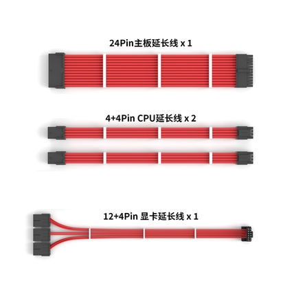 Nome: Kit de Cabos de Extensão para Fontes Redragon 4 em 1 Vermelho Placa Mãe 24 Pinos ATX, PCIE 8 Pinos e 12VHPWR RD-GCP07
